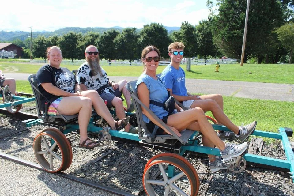 There are four options for riding the rails at Andrews Valley Rail Tours: The RailBikes, The Passenger Cart, the Conductor Experience and The Choo-Choo.